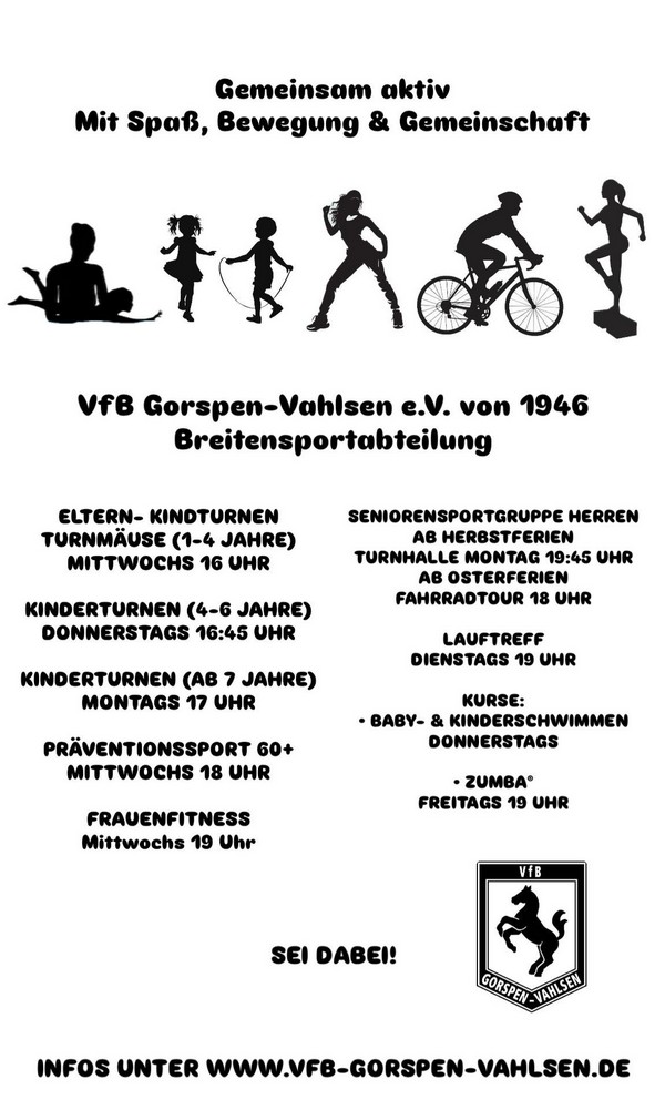 Der VfB Gorspen-Vahlsen trägt dem Wandel Rechnung und hat viele Angebote an Sportmöglichkeiten, Begegnungen und gegenseitigen Austausch geschaffen, um dem entgegenzuwirken.